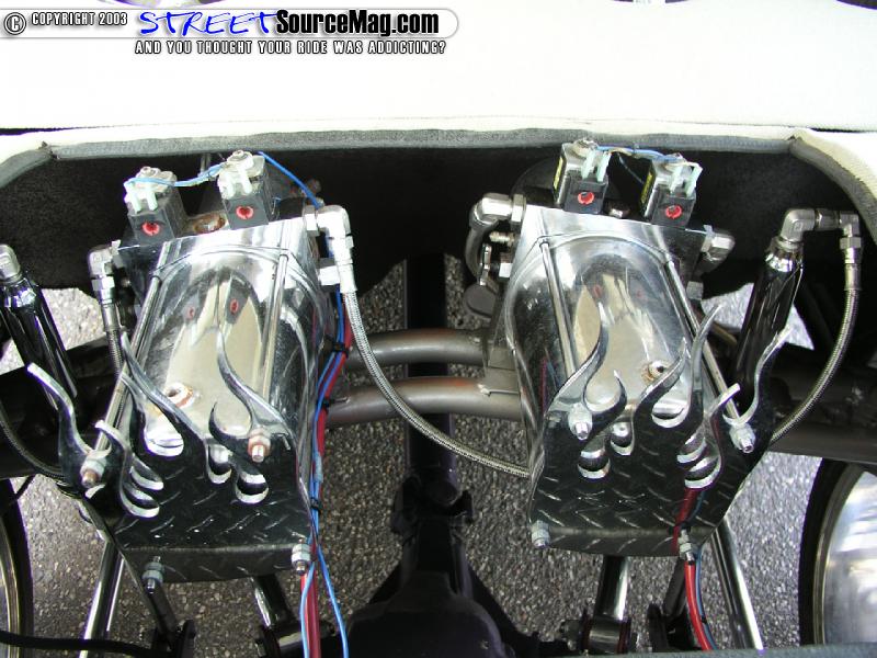 The first order of business was to take the Blazer completely apart, all the way down to the frame apart. John knew that to be competitive in the scene that his Blazer had to be built to a high standard. So with this in mind John decided to replaced the front springs with a new set of Red's Hydraulics 8" cylinders, replace the factory spindles with a set from Belltech and sent the entire front suspension off to the local chrome shop to ensure it not only worked good but looked good too.