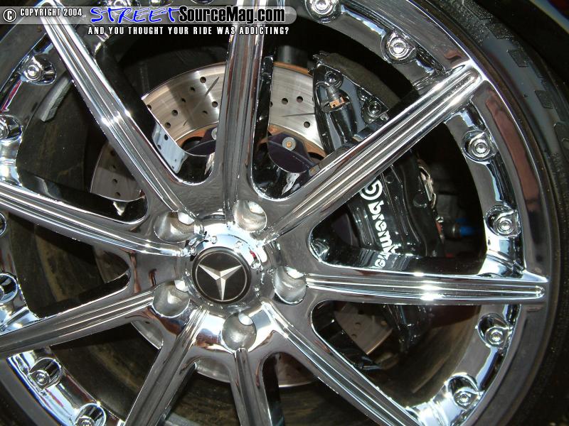 While in their hands they would remove all of the stock suspension items and in their place install air bags, valves, compressors and air tanks. To save room for the stereo that was to come Grant would hide the air tanks in the front bumper near the radiator leaving everything looking stock from any appearance.   Next Steve would have a set of Brembo brakes installed to help slow down the 19’s while an Eibach sway bar set up would be installed to keep things level around the corners.