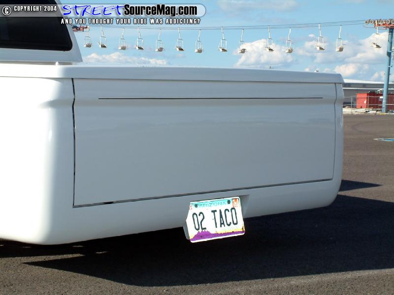 To finish up the bling Oliver would install a billet antenna along with a Snug Top tonnaeu cover. Scott at Drew Bros. Customs of chandler, AZ would be responsible for the body modifications. Once the bodywork was straight and the base white was re sprayed Oliver would have a set of Corvette blue flames pinstriped in orange.