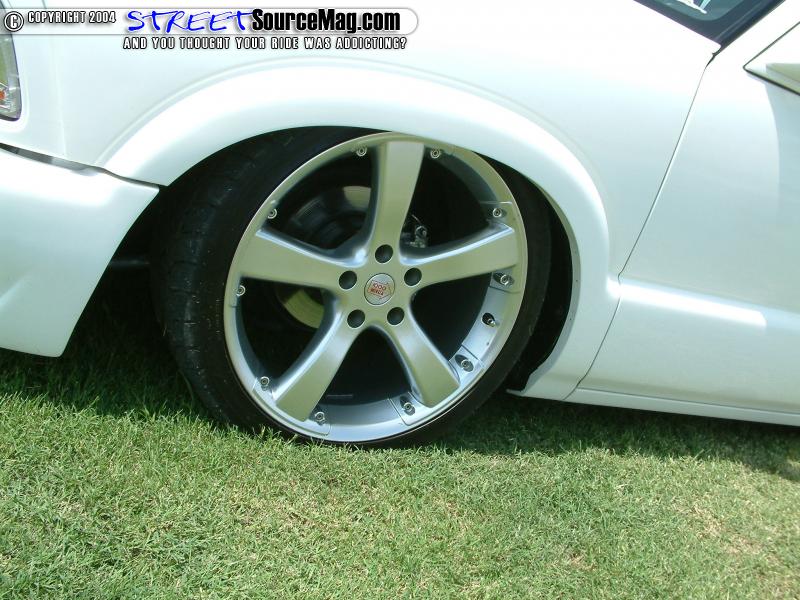 Not low enough Alvin would construct custom bag mounts and install Air Ride Tech air suspension at all corners. Tokico shocks and a Suspension Techniques sway bar would then be installed to ensure a good ride. Stainless steel brake lines would be ran through out for that baler look. With the new engine beefy-ness and low stance Alvin would have need for some new shoes. To manage this feat Alvin would bolt up a set of 19x8.5 inch Mille miglia Evo5’s wrapped in 245/35 Nitto NT-555 in the front with 19x9.5 with 275/30’s in the rear.