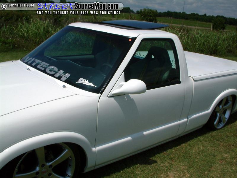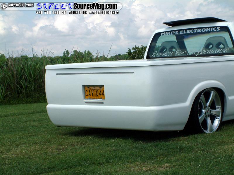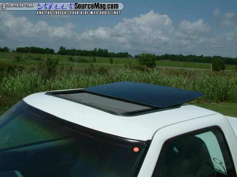 Continuing with the shaved items Alvin would be rid of the gas filler door, taillights, hood squirters, antenna and 3rd brake light. While the taillights are found replaced by a set of LED’s, the headlights would also be replaced by a set of ’97 Blazer headlights. To finish off the exterior modifications Alvin would have a Trader bed cover and wiper cowl cover installed along with a Power sunroof for those sunny Island days.