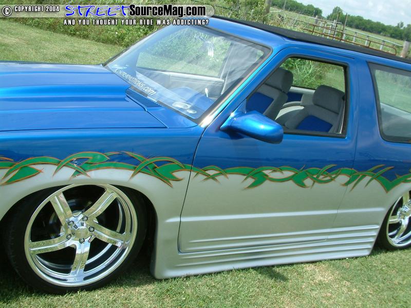 The body lines, emblems, antenna, wipers, tailgate handle and roof rack would all be shaved while a set of ground effects would be molded to the body. Flush mount LED’s would be installed for turn signals in the front bumper while a 67”x40” Street Beat sliding ragtop occupies the roof. Brian with help from Jay Lucey would take on all of the bodywork.