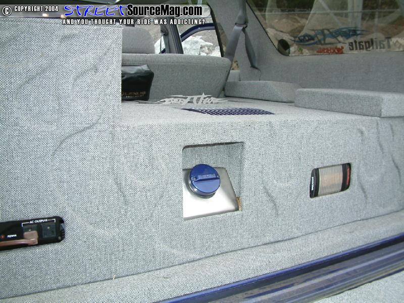 Keeping things different, the rear doors where shaved of the door handles while the front where replaced by a set of ’95 Altima door handles. Moving back the gas filler door would be shaved and moved behind the rear gate while the gate handle would receive the same shaved treatment. Rounding out the rear the taillights would be shaved and replaced by LED’s and a custom roll pan would be molded in.