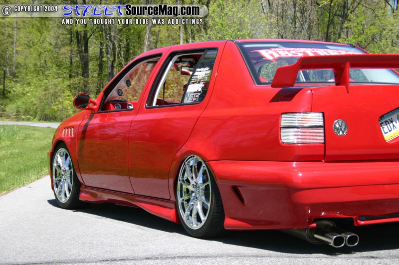 The exterior of the car features shaved door handles and moldings on the doors. The trunk was shaved and small reverse lights with VW covers were frenched in along with a frenched in license plate. Out back a set of all clear taillights were installed.