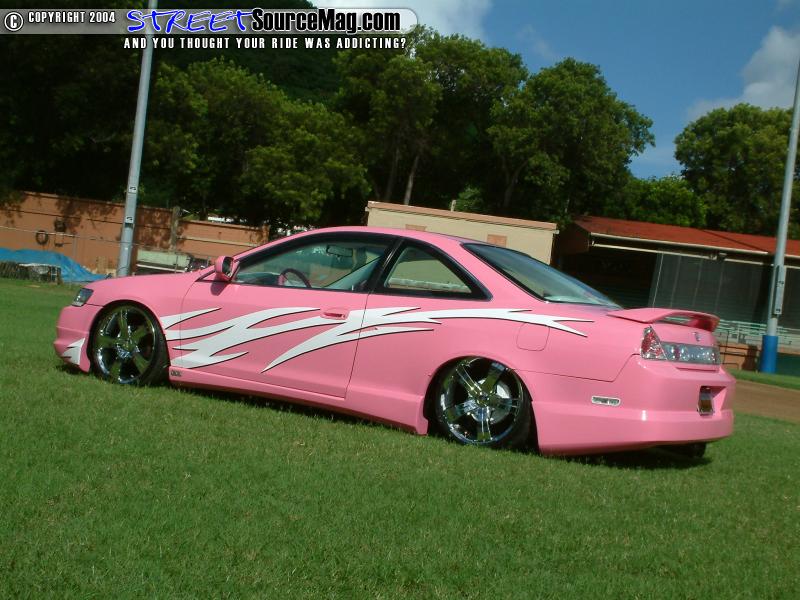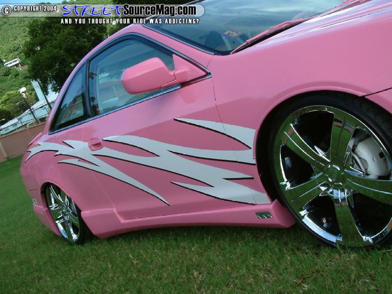 With the bodywork complete Shamila would then turn to Nataniel Francis of St. Croix to spray the pink basecoat through out the Accord. Not yet complete Joey from Epok Graphics would then lay down a set of white and black graphics to help break things up.