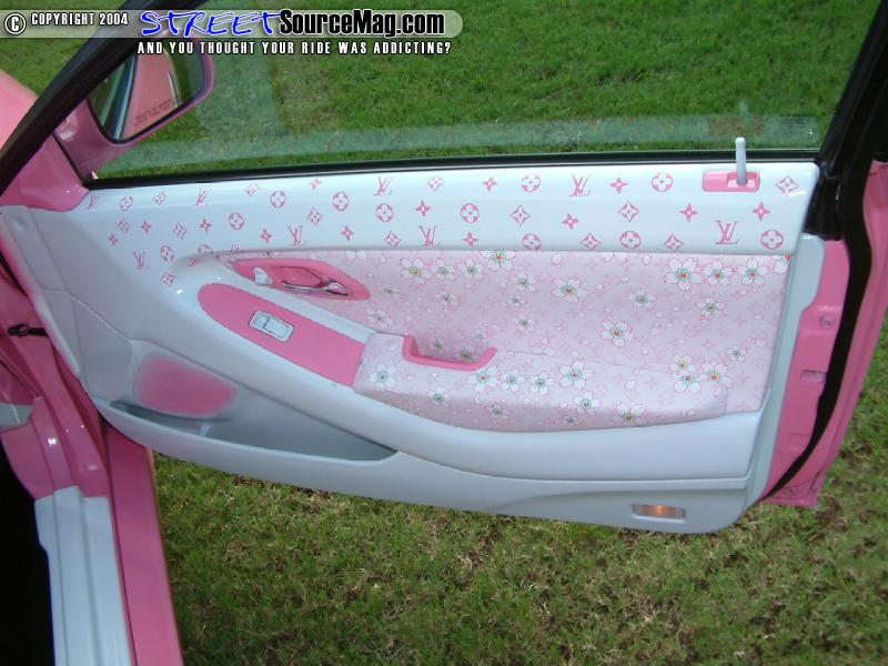 Moving to the inside of the Accord you’ll find an array of Louis Vuitton pink blossom material. The dash with some pieces wrapped and some painted would be the beginning of the ventures. Next the doors and headliner would be wrapped along with other interior panels.