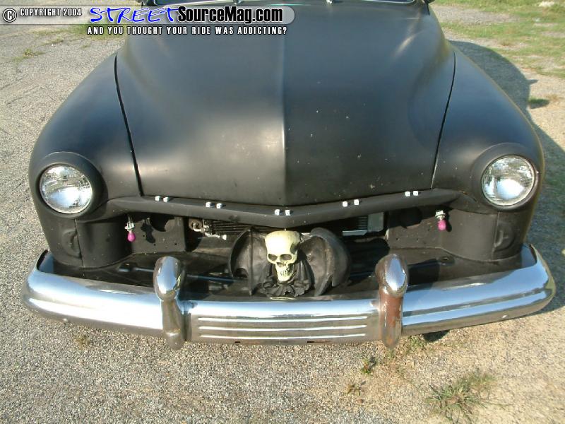 Getting the exterior mods-rolling Scooter would tear down the Merc and begin cutting the roof. With the pillars cut and the roof sectioned to the correct proportion he would end up with a 4-½ inch chop top. Next Scooter would cut into the side skirts extending them 2 inches.