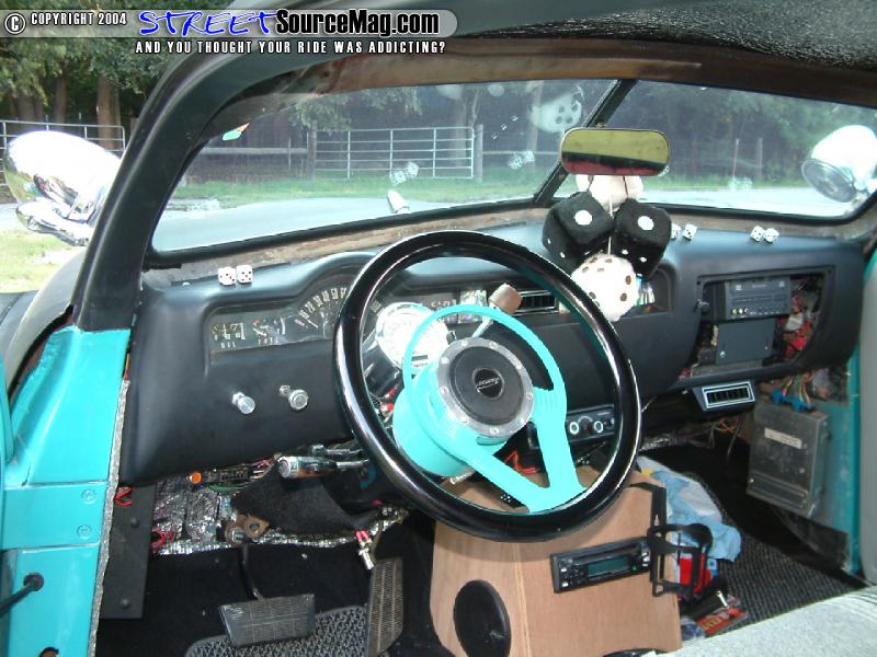 With the old stock rear end not up to par, Scooter would install a ‘76 Nova rear end along with an adjustable Air Ride Technologies air ride suspension set up. Now tucking the ‘57 caddy chrome caps with white walls Scooter would almost be finished with his new project.