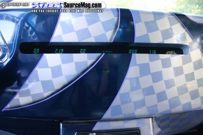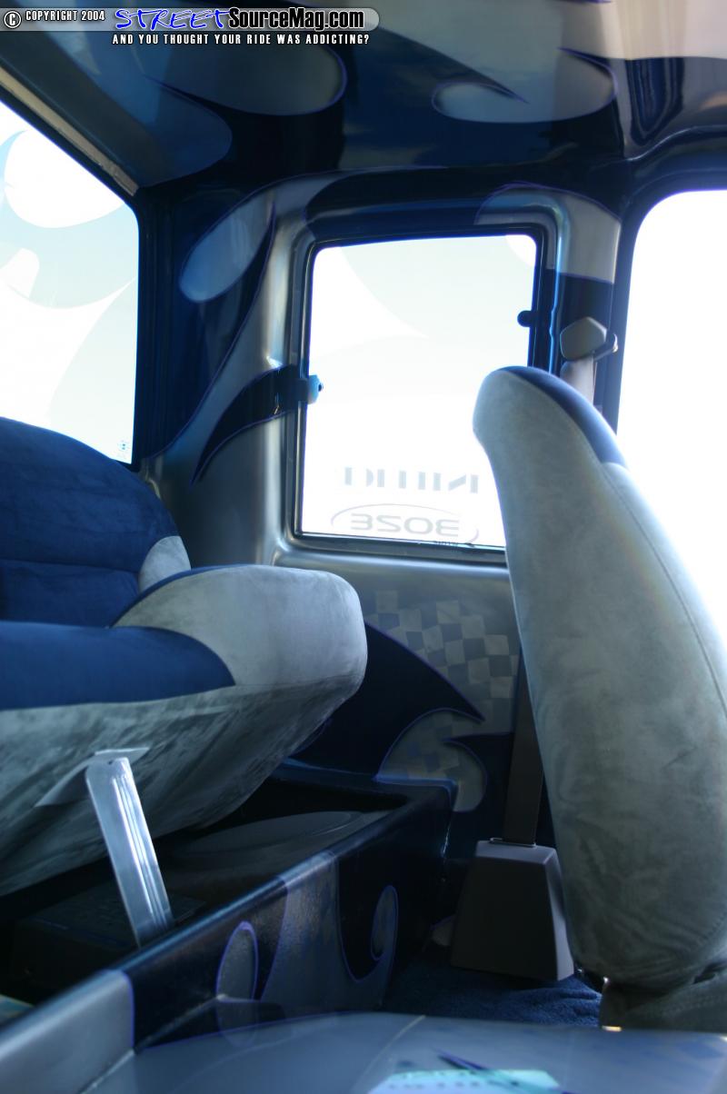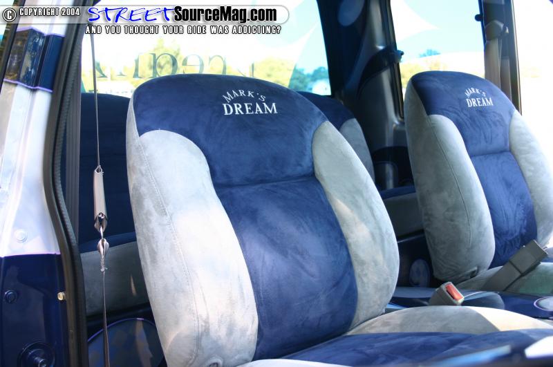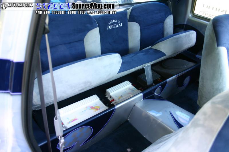 Marks Dream rolls on a set of 20” Boze Stixx wrapped in Michelin tires. Behind the wheels sits a set of 13” BAER brake’s up front, and 9” out back. The slotted and cross-drilled rotors finish off the look. Under the hood sits a fully polished and billet adorned Chevy 350 motor. The motor boasts electric fans, March billet water pump alternator and pulls, billet valve covers, and other dress ups. There is also a set of custom-built aluminum tubs.