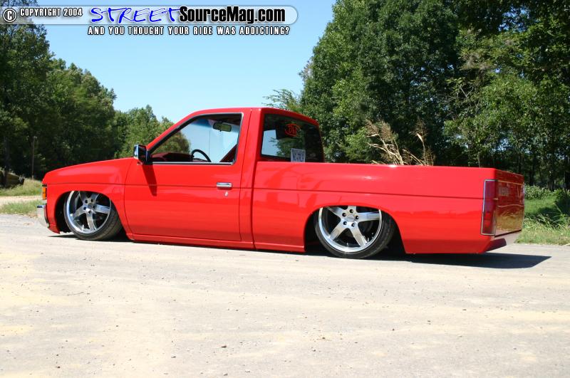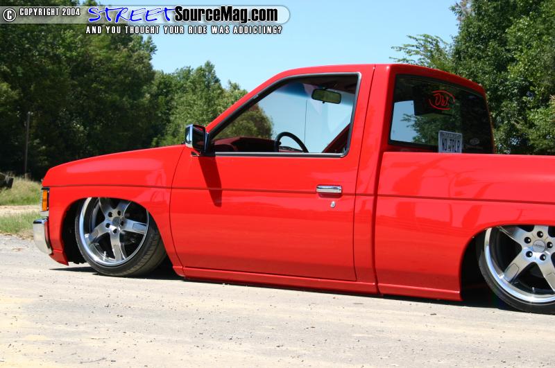With the bodywork completed Chris’s Nissan was now ready to be sprayed with his paint of choice, Viper Red. After whatever didn’t need to be painted was removed Chris’s truck was treated with a smooth Viper Red base, and even smoother clear. Chris’s truck was then pulled out of the booth and put back together again. As you can see the exterior of this Nissan screams perfection.