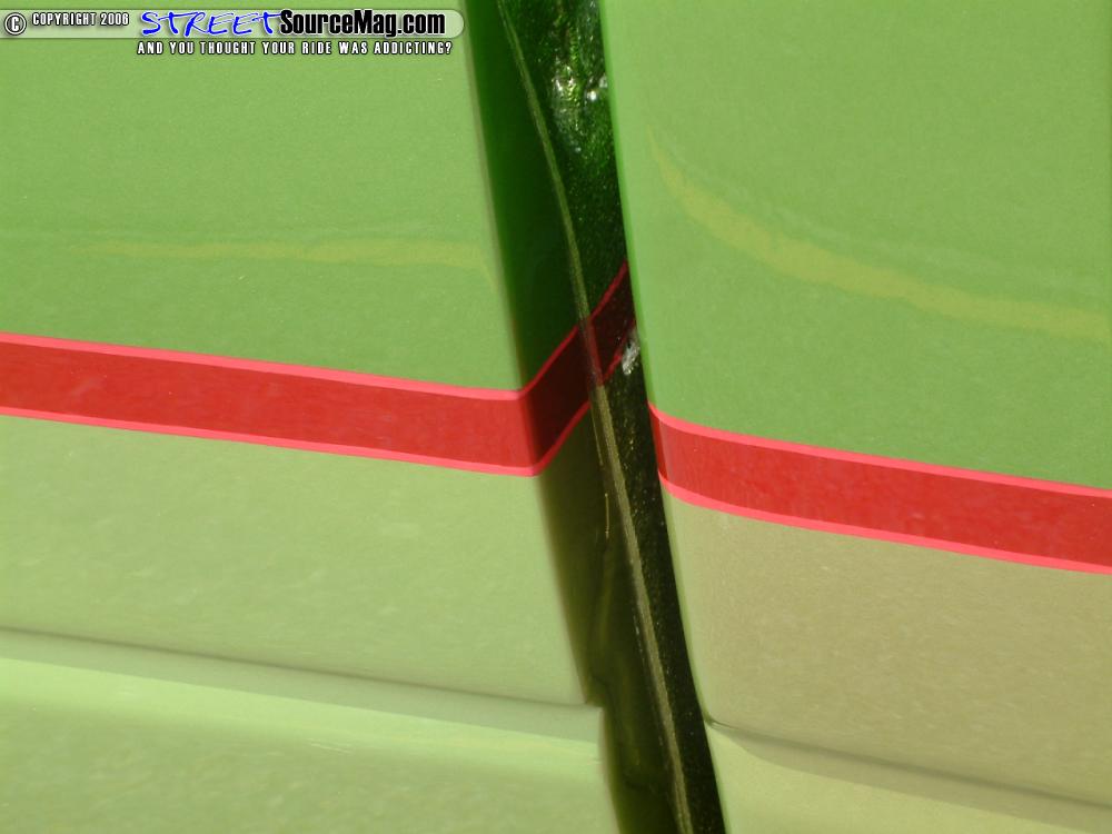 To break up the new two-tone paint Travis would look to Chad “Snapper” MacDonald from Never Satisfied Customs for his expertise. The colors used would be a candy red/orange and stripped with red and lime green.