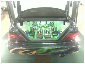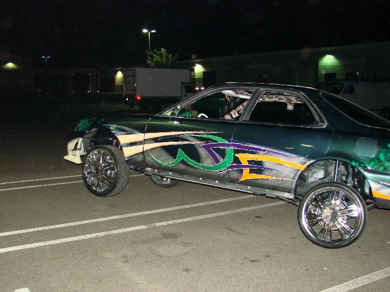 4 pump showtime competition setup, with 4 parker accumalators, with all parker fittings, and 4 blue top optima batteries, 8 inch in the front, and 12 inchers in back, fully chromed suspension, rides like a caddy. lays on the ground, and gets up like a jeep. hits 3 wheel front or back. all done by me. unibody cut up to lay low on 20s with custom made brackets, and fully chromed suspension. removed the stabilizier bars. so it would lean a mean 3 . 6/29/08 in the process of redoing the setup. going down to 2 pump setup, and redoing the trunk, should be done within a week or so, will postpics then