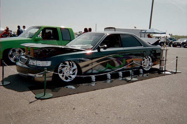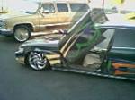 SHAVED HANDLES, SHAVED ,MOLDINGS, CUSTOM MERCEDES BENZ STYLE MIRRORS GRAFTED ON, CUSTOM MADE BILLET GRILLS, CUSTOM MADE FRONT AND BACK EYELIDS, PAINTED JUNIPER GREEN WITH HOUSE OF KOLOR GRAPHICS, AND TOPPED OF WITH 3 GALLONS OF CLEAR. 6/16/04 JUST DID THE LAMBORGHINI DOORS AND NO IT WAS NOT A BOLT ON KIT, KIT WAS MADE FROM SCRATCH FOR THIS CAR, AND DONE WITH HELP FROM JAIME AT PHAT RYDEZ, MODESTO, CA
