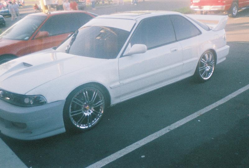 Blitz nose, black widow side skirts and rear bumper, one piece projector headlights, Wings West rear spoiler, 18" Focal Racing wheels, Custom White and blue pearl paint, Euro clears, full catback exhaust, shaved antenna.