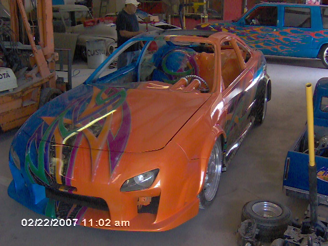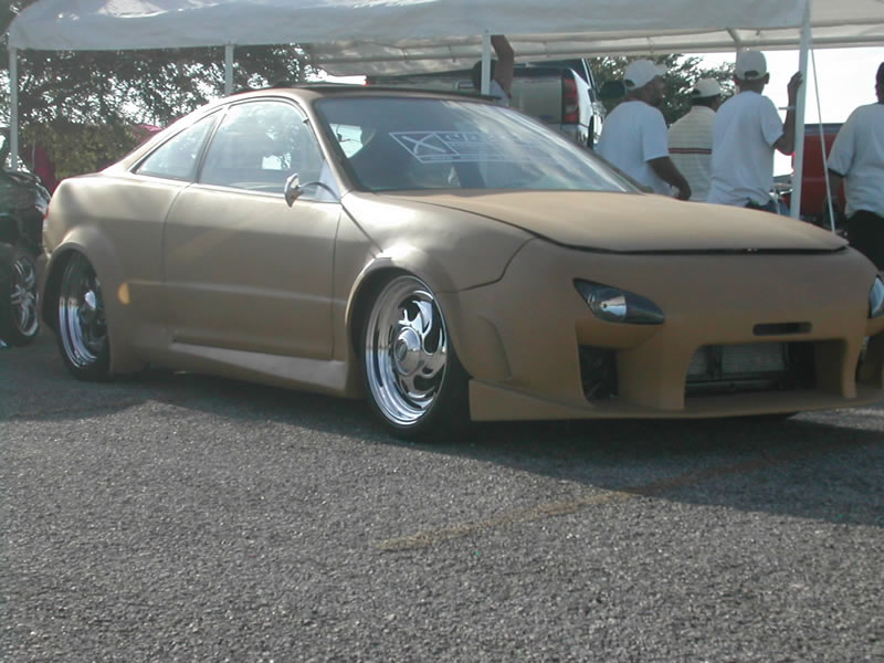 custom fender flares to tuck 20x8 in the rear, motorcycle headlight conversion, motorcycle gas cap, prelude tails, shaved out, sliding ragtop, side skirts molded into one piece. Chaotic Customs 281-290-6000