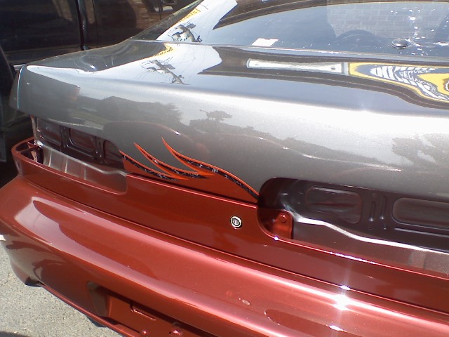 All new paint for the 3rd time..My first full paint job...Shaved antenna, hatch emblems, rear squirter, fromt license plate holes,cutout for hand to open hatch. Rear Wiper delete.98 Front and rear bumper conversion.Sedan door handles.