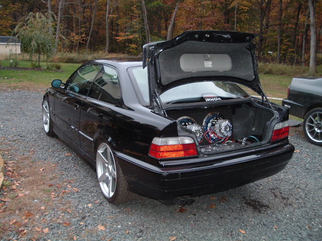 99 grille, AC Schnitzer front bumper cover, racing dynamics spoiler. M3 side skirts, M3 mirrors, all moldings and everything painted to match.