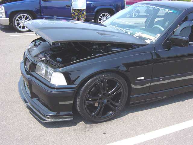 Standard BMW Schwartz black paint, Black Hamann Kidney grilles,M3 Front bumper, M3/4 Door moldings,European Ellipsoid headlights w/ Factory Angel Eyes,Rieger M3 GT Style Carbon Fiber front lip spoiler,ACS CSL type Carbon Fiber Hood, Euro Lightweight M3 Rear wing with lower extensions. Euro M3 red and clear tailights, Euro Clear corners, Euro Clear sidemarkers,Removed 328i badge,Street Glow Gold Series under car kit(Neo BluE)! More to come