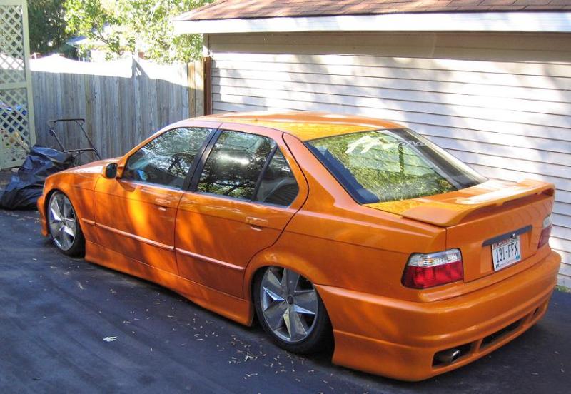 custom kandy orange reiger tuning kit angeleye headlights crystal taillights M3 mirrors shaved emblems and windshield squirters