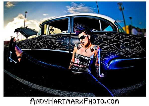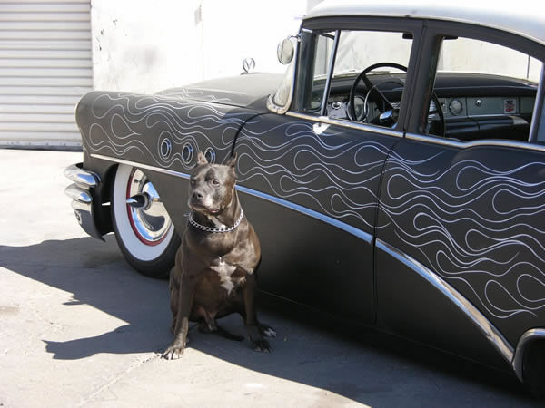 Flat black with pinstriped flames