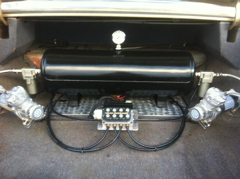 Accuair E-level system, 7" slams on all corners and custom built 4-link for rear