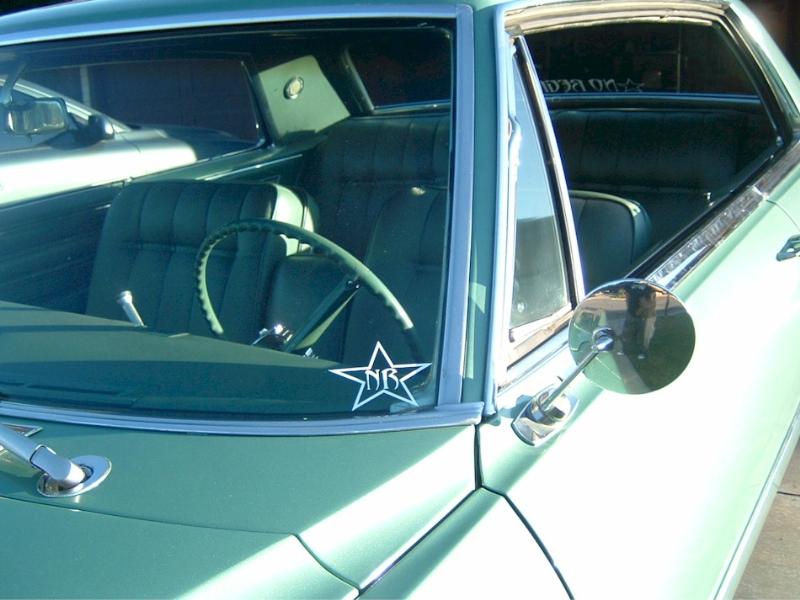 metallic green stock, except for the roof, it has an overlapping, panel fade, lace job with some pinstriping done by my roomate josh.