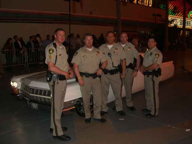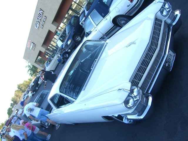 shaved the side emblems, front emblems, side moldings and door handles. Smoothed out the body and repainted in 2004 Cadillac Diamond White with a House of Kolors Ice Gold Pearl over it, MIPA clearcoat. All work done by Dunn-Rite Autobody in Las Vegas, NV. Engine compartment treated with Por-15 then Por-15 Black coat uv protectant. Pinstripped with really fine gold colored outline scallops on the sides, hood, trunk and roof by Wink of Boyd Coddington. Pinstripe pieces on the hood and trunk done by Tim in Las Vegas, NV. Entire underbody treated with Herculiner as well as the inner fender wells, then uv coated in gloss black. It now has painted underhood, control arms, frame rails etc. Old vacum canisters, windshield wiper motor, vacum plugs etc were removed from the firewall. Lite Glo provided a sealed beam conversion for the four headlights turning them into crystal h-4 housing's and Phillips provided their HID kit. Hood is on linear actuators (12" linear's from Spal) and controlled by Spal digital actuator controller. Spal door popers and helpers, trunk popper and hood popper