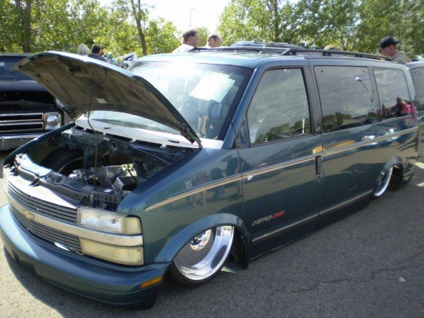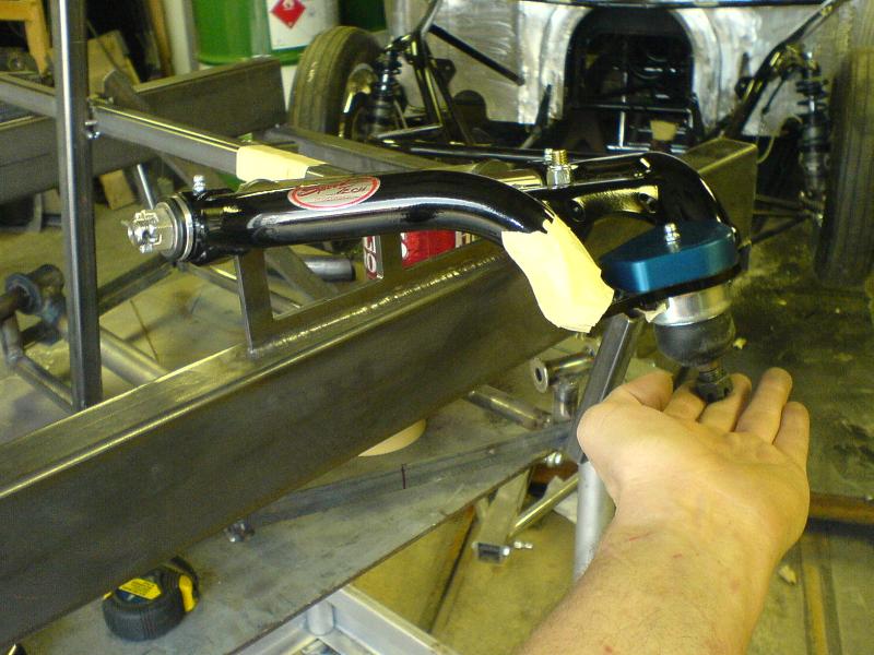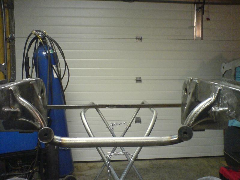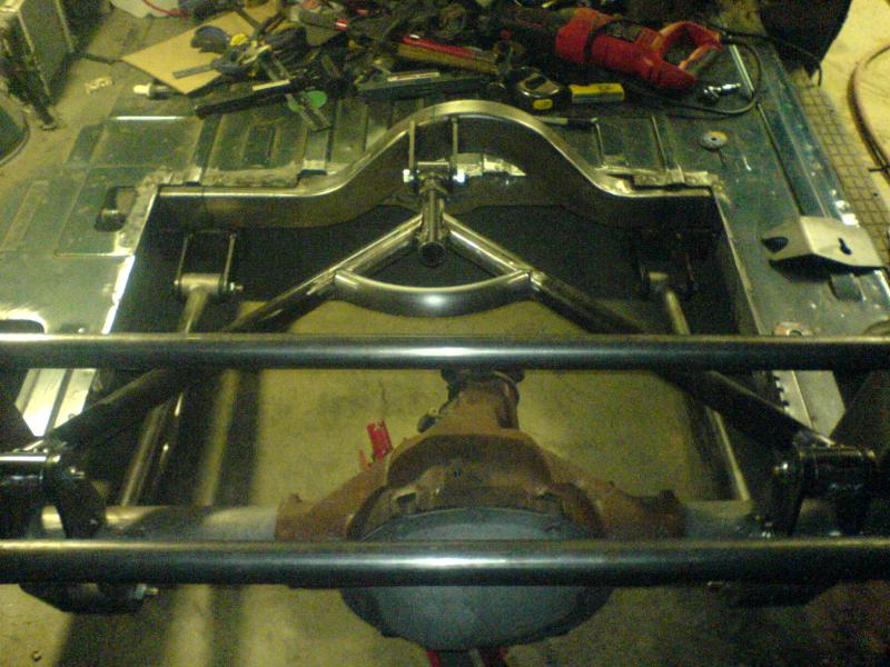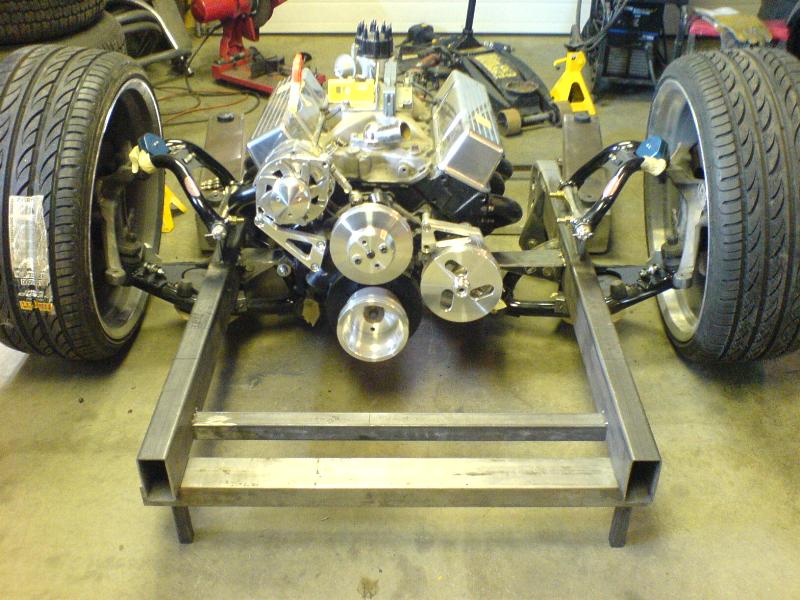 Fabbed front frame, wishbone 4-link out back, slam bags.