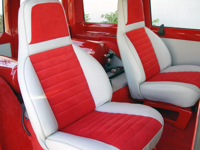 03 ESCALADE FRONT END 89 DEVILLE TAILLIGHTS SHAVED DOOR HANDLES AND GAS DOOR SMOOTH ROLL PAN TWO TONE RED PAINT WITH SILVER FLAME DONE BY MAD PROFESSOR CUSTOMS