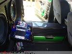 2- alpine 15" with 1000 watt alpine amps hooked to a alpine 7" indash touch screen tv powerd by a kenetic 2000 watt battery