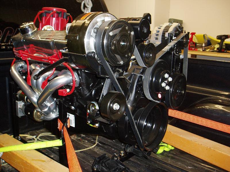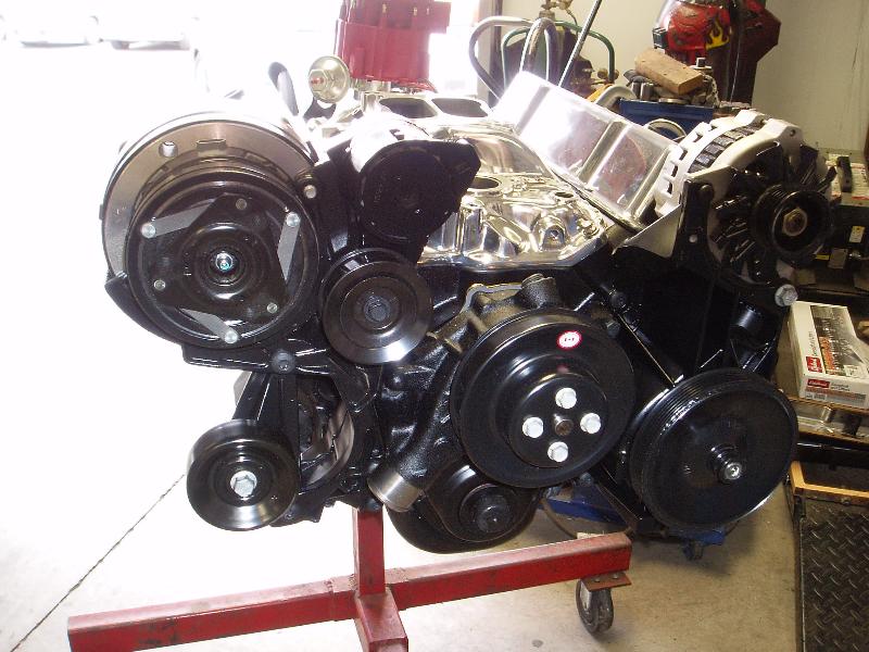 Chevrolet 350ci with an Edelbrock performer carb/intake /cam kit& 700 R4 transmission. Sanderson ceramic coated headers