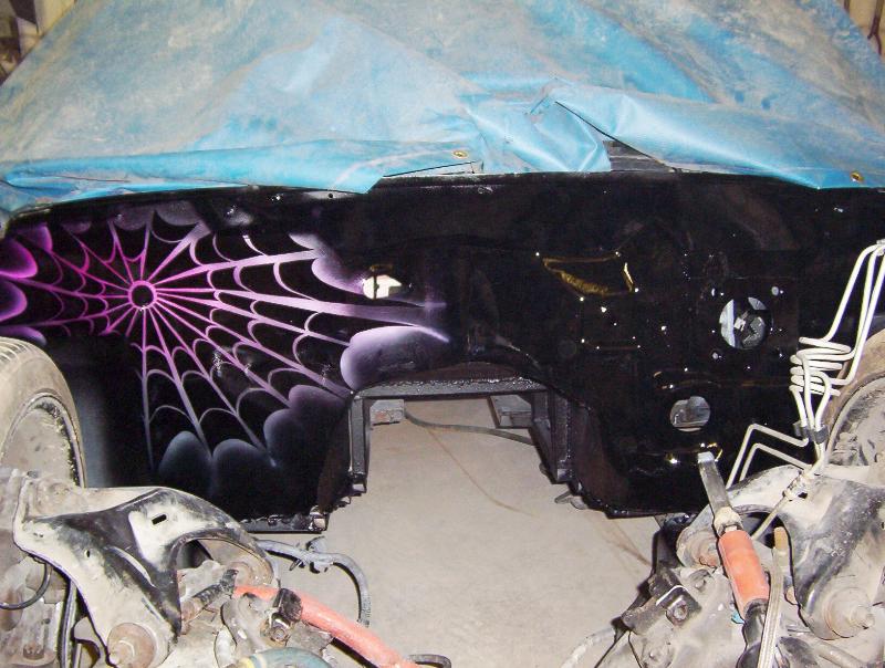 SHAVED Handles and Gate, cowl hood, Custom Fabricated Frame from front seats back, Shaved firewall.. AirBrushed Hood, FIrewall And Gate