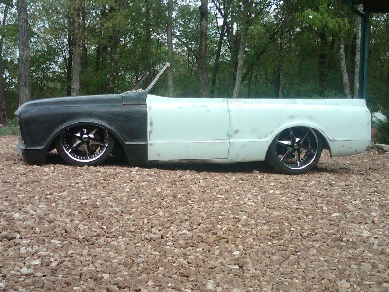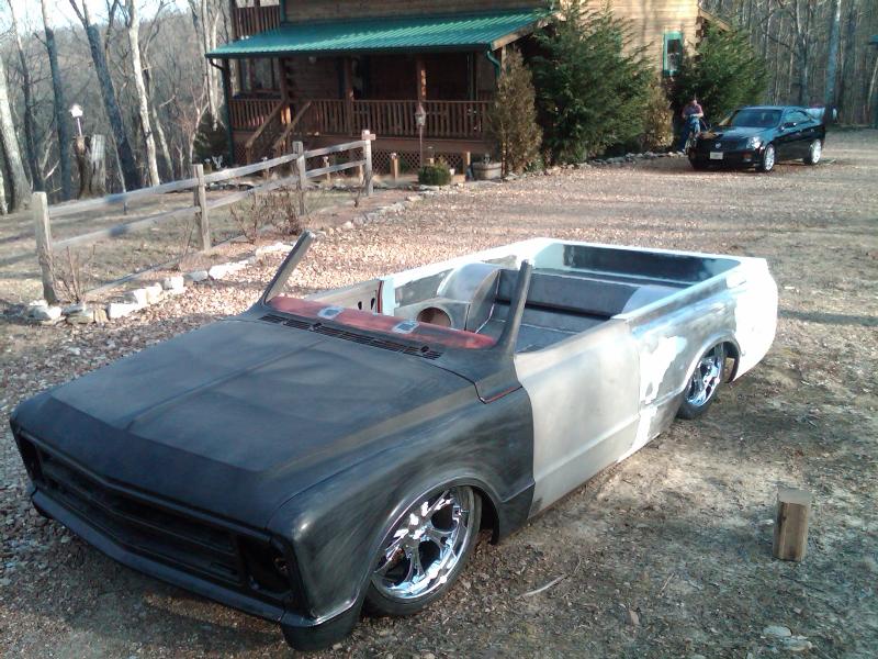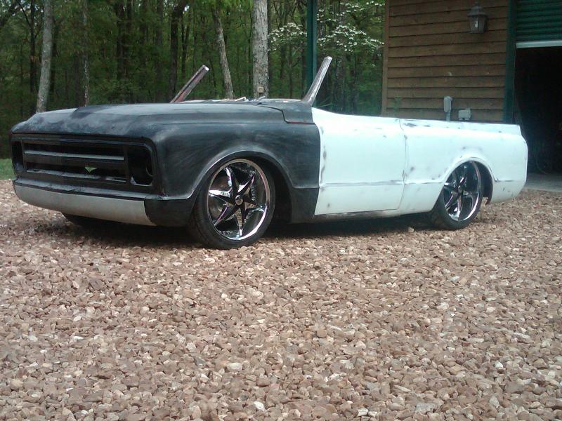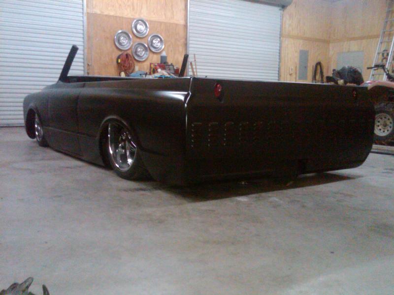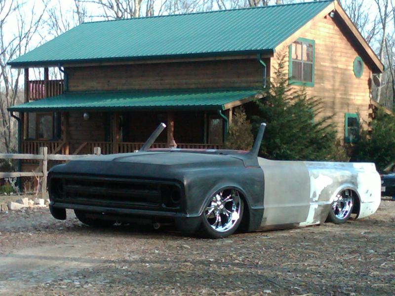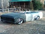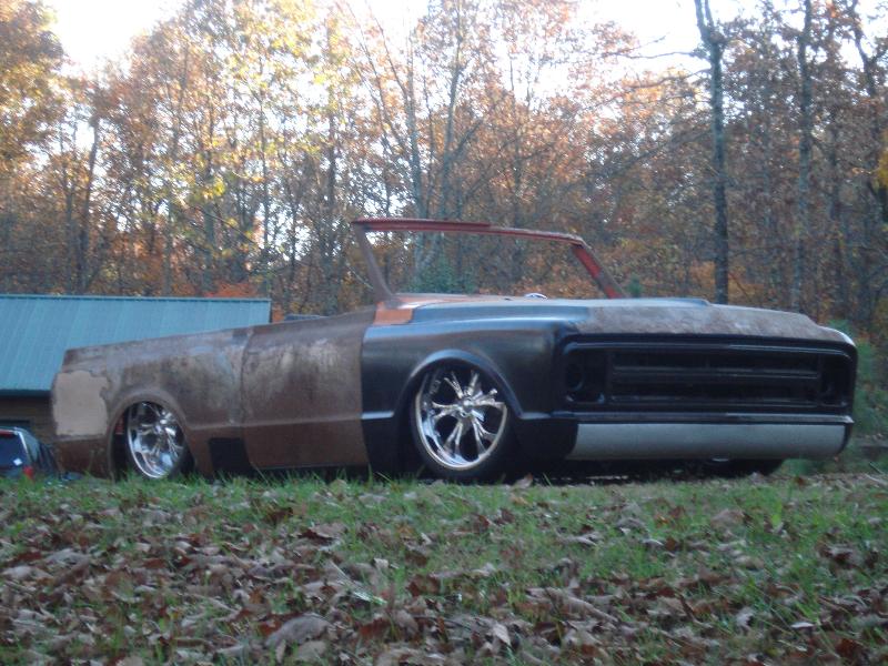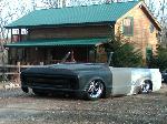 full time convertible, capped doors, 67 front clip, louvers on the rear, 39 ford tail lights, metal work galore...
