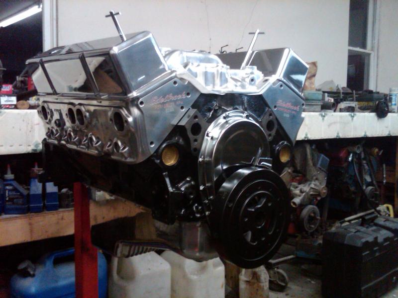 SBC350,10:1, polished edelbrock heads, comp292,gear drive