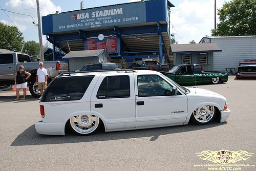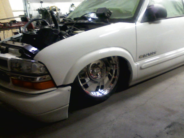 stock 4.3 with intake full magnaflow cats and muffler exiting in stock location.plus stock inside ht-a/c modified out side a/c works great