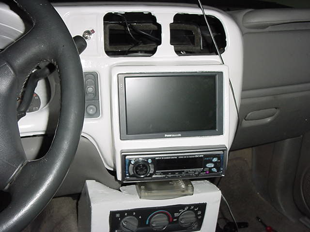 aiwa head unit, 4 kicker CVR 12's. BD1001 punch amp Blaupunkt DVD 2 MA 5.6 headrest screens, 1 7.2 in Power Acuostik screen molded in dash
