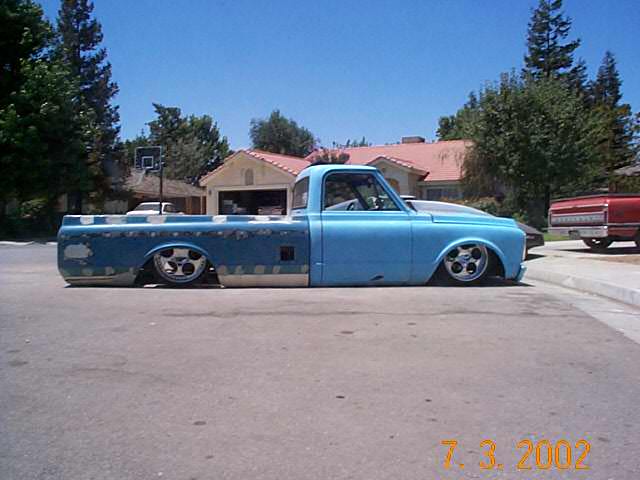 shaved handles, gas filler, cowl vents, side markers, antennae frenched into back of cab,shaved tailights, tailgate handle and leds between tailgate and rollpan