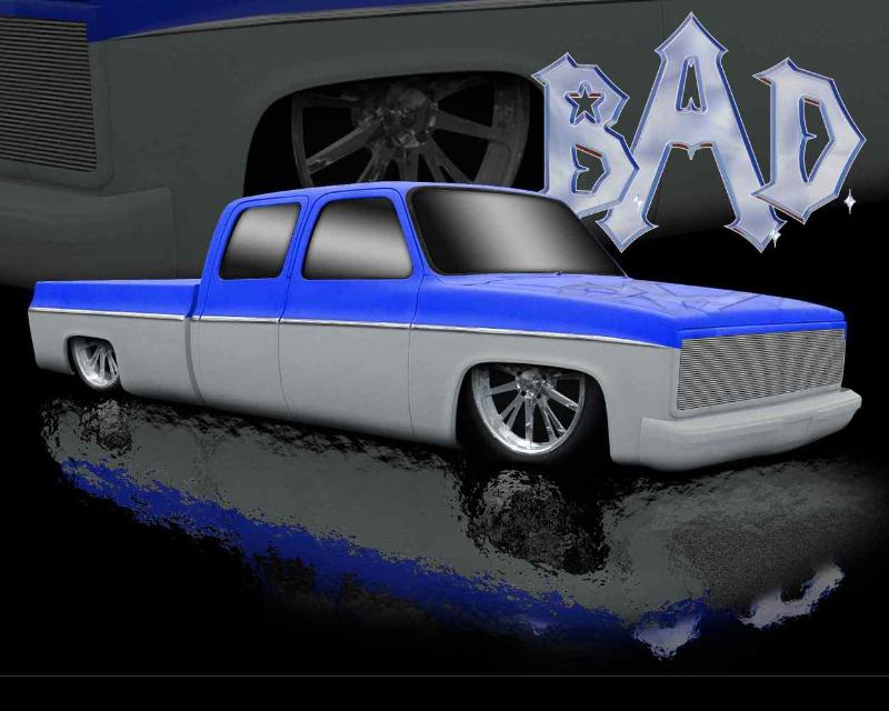 Crew cab on a 1/2 ton chassis, 6 ft bed. Shaved completely. Truck has now been completely painted by Kevin Cox and the crew at Custom Concepts in Oklahoma City.