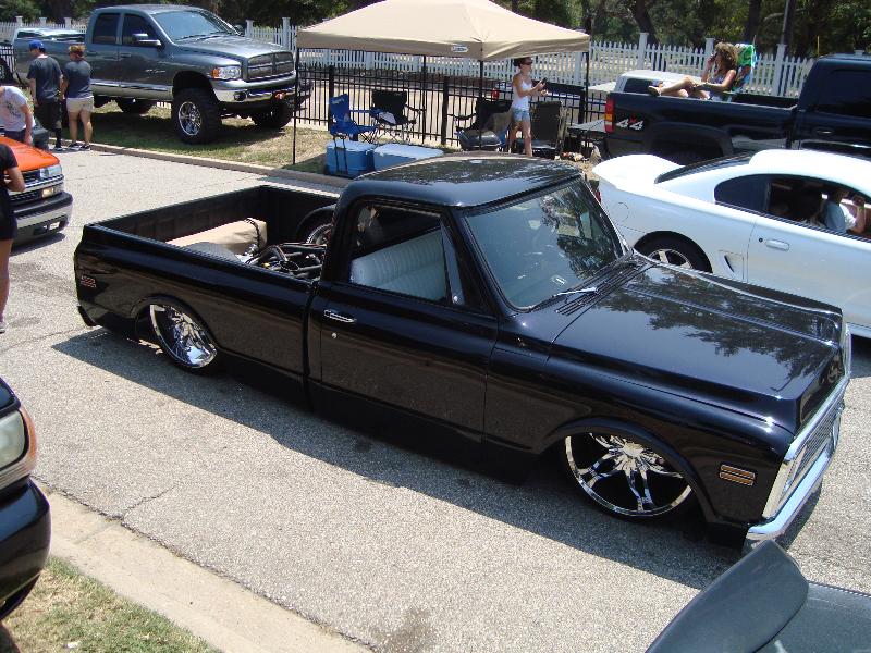 Porterbuilt Streetrods cross member, Air Ride control arms, RE-7 Slams all around, 3/8 Air Lift Chrome valves, custom 4-Link and bridge.