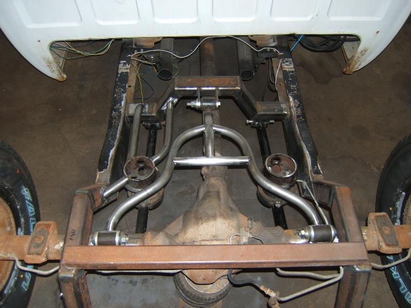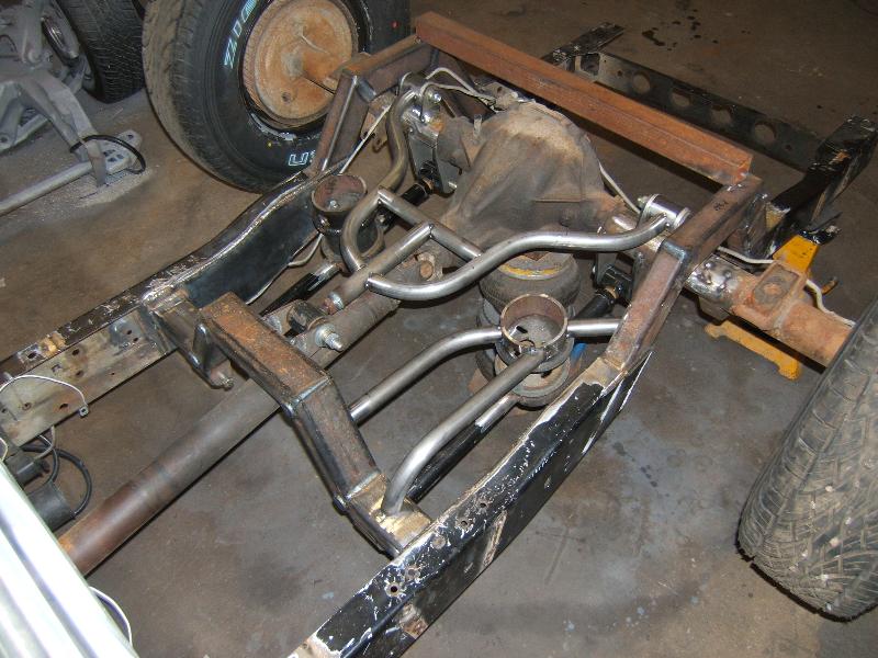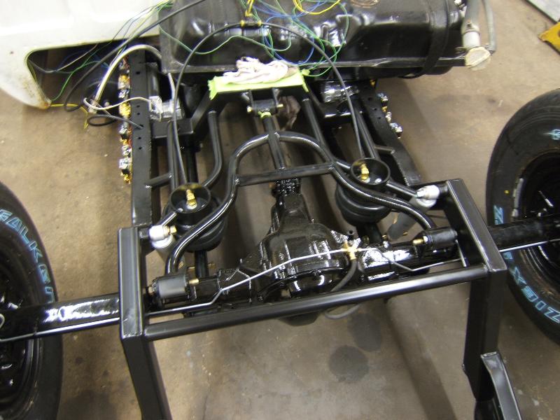 slam re 7's front and rear, 3/8" line 3/8" Asco valves, 7 switch, Viair 480 Comps, wishbone 3-link with bag on bar, Monster tubs, lays 22/24 combo