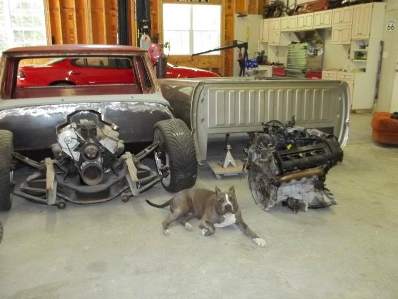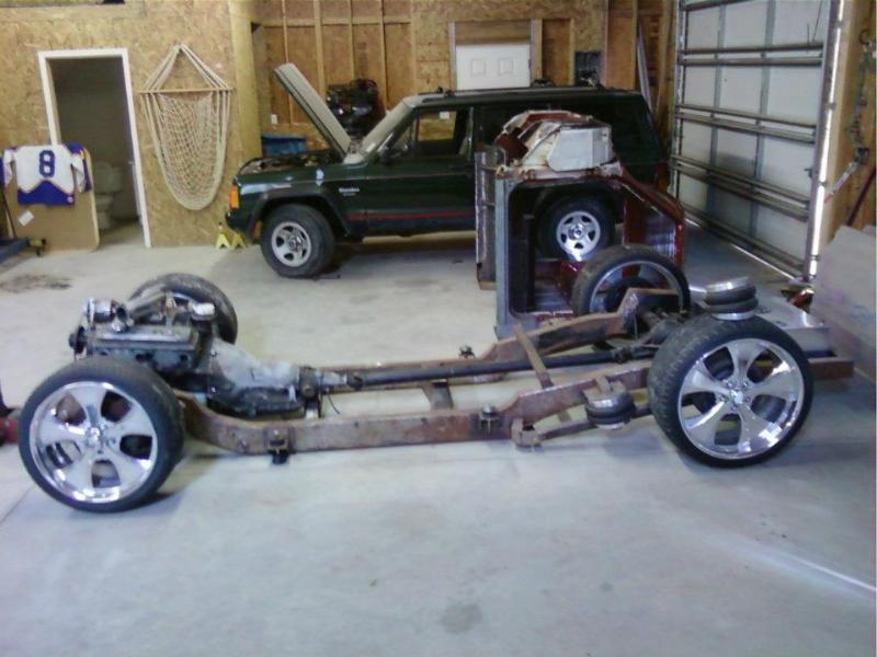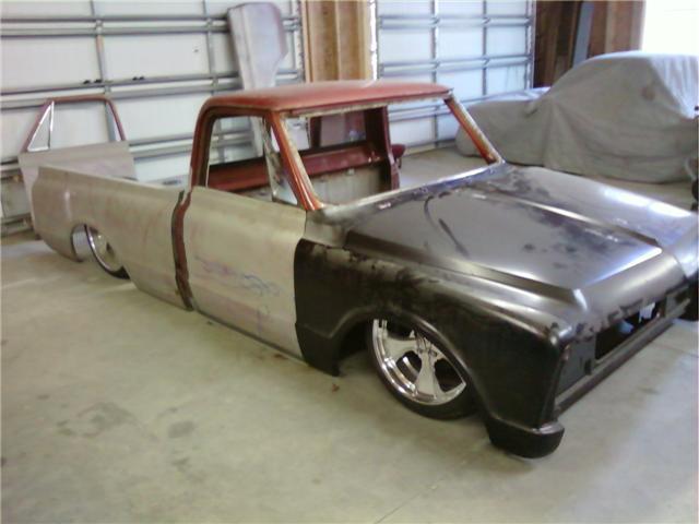 Shaved doors, marker lights, stake pockets, antenna, fuel filler, emblems. Shaved, Z'd and boxed in frame. Bodydropped, new sheetmetal floor and firewall. 67 front end