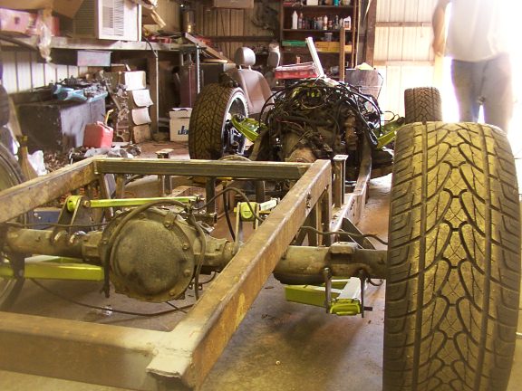 Frame plated from firewall back. Back halfed. lays rocker Cut and rolled pinch 3" Z , 1 3/4" channel.
