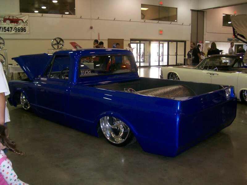03/07/2009 fixed all body work and repainted House Of Kolor True Blue Pearl..... Shaved door and tailgate handles, cowl vent, gas hole, driprail, taillights, antenna, and front turn signals / frenched license plate box, molded tailgate,Hitech Led tail lights, tubbed rear fenderwells / radiused bed corners / color-matched Line-X