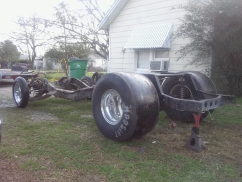 2" drop spindles, Rear notched with adjustable ladder bars with coilovers. 9" Ford with 4.56 gears. Rear disc brake conversion.