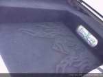 BLACK AND GREY TWEED INTERIOR. CAMARO BUCKET SEATS IN BLACK VINYL AND GREY TWEED W/FLAMES. ALL POLISHED ACCESSORIES. FULLY POLISHED COLORADO CUSTOMS FLAMED STEERING WHEEL. CUSTOM PAINT MATCHED FIBERGLASS CENTER CONSOLE HOUSING 3 JL 10'S.
