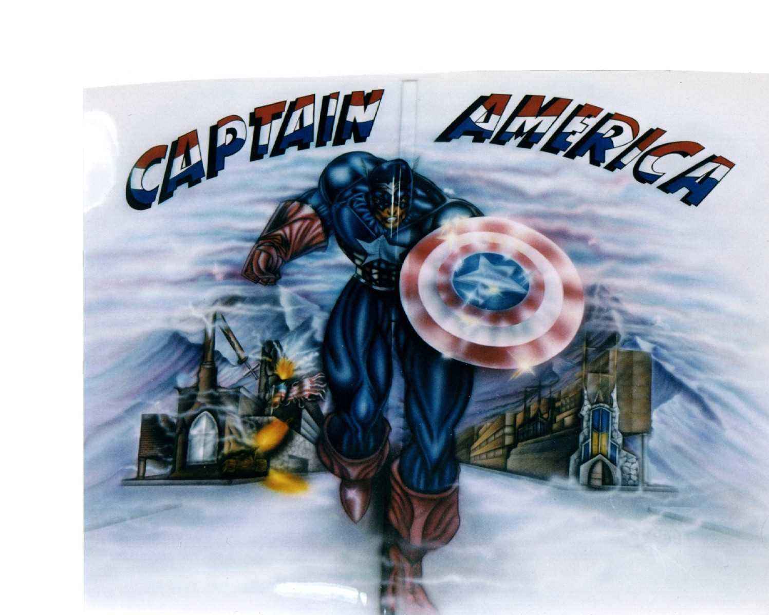 White with Silver pearl violt marbelizer and diamond tread air brush work.Also two Captian America murals.
