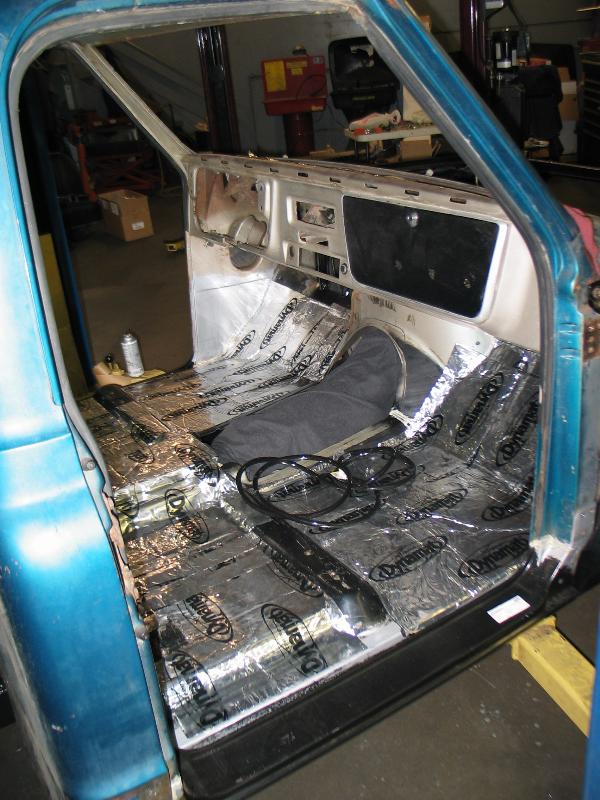 no time to install carpet so we threw down every ounce of dynamat i had stashed in the shop.
