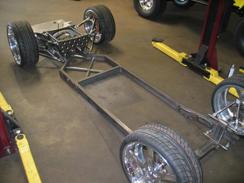 We built the chassis using 2x4-inch.120 wall tubing. The xmembers and ars are 4130 chromoly