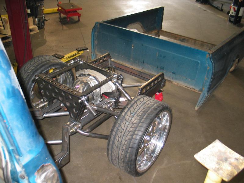IRS before bulkhead supports welded in place. cab needs new rockers.
