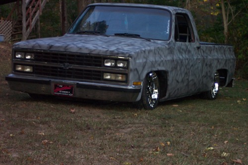 bagged in front, static drop in the back with a flip kit and 2 inch blocks